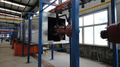 涂裝機械中前處理設備用于產品的熱水洗、預脫脂、脫脂、表調、磷化、鈍化、純水洗等。以去除被涂件構成物之外的所有異物,提供適合于涂裝要求的良好基底,以保證涂層具有良好的防腐性能和裝飾性能。其設備有間歇步進式和連續通過式,或分為噴射式、噴浸結合式。