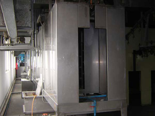 涂裝機械中前處理設備用于產品的熱水洗、預脫脂、脫脂、表調、磷化、鈍化、純水洗等。以去除被涂件構成物之外的所有異物,提供適合于涂裝要求的良好基底,以保證涂層具有良好的防腐性能和裝飾性能。其設備有間歇步進式和連續通過式,或分為噴射式、噴浸結合式。