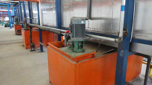 涂裝機械中前處理設備用于產品的熱水洗、預脫脂、脫脂、表調、磷化、鈍化、純水洗等。以去除被涂件構成物之外的所有異物,提供適合于涂裝要求的良好基底,以保證涂層具有良好的防腐性能和裝飾性能。其設備有間歇步進式和連續通過式,或分為噴射式、噴浸結合式。