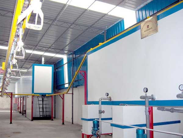 靜電發生器,噴粉槍、噴粉室、流化供粉裝置、粉末回收裝置和烘爐。通過與噴槍自動升降機、懸掛輸送機、自動送粉篩粉機等設備的結合使用可構成自動化流水線。